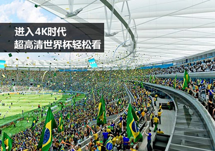 繼2006年的高清、2010年的3D,本屆巴西世界杯從拍攝、制作到收看使用了完整的4K解決方案。4K所搭載的是超高清畫質處理技術,讓色彩調節點的數量達到普通電視的7倍,使畫面的顯示效果更為細膩,充分展示“創造、捕捉、記錄”方面所帶來的足球運動的快樂與激情,讓我們球迷真正享受一場饕餮盛宴。在接下來的賽事中,將會有三場使用4K技術轉播,他們分別是6月28日的一場1/8決賽、7月4日的一場1/4決賽以及