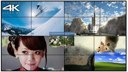 4K的數(shù)字拼接功能不僅能夠滿足多路4K圖像的獨立顯示,也可實現(xiàn)4K圖像的拼接全屏顯示,同時支持4K超高清圖像上的1080p多畫面顯示。