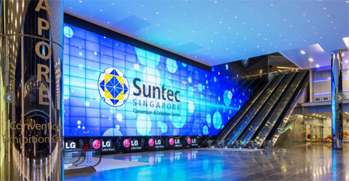 Madhok,Suntec會展中心CEO表示說“此全高清數字畫面墻是我們技術套組的集成部分,它包括數字標牌和免費無線Wifi,這個巨幅屏幕迅速成為攝影愛好者的朝圣之地,同時也是新加坡留給他們的有標志性且難忘的紀念品。高分辨率的顯示內容每天持續播放16小時,使參觀會展中心的人們流連忘返。
