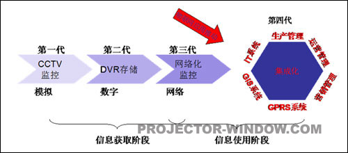 從安保、交通、能源、環境、政府應急到商業信息顯示、廣播電視等,都有效地整合了安防監控信息與業務運行信息,安防應用由事后的調查取證,向事前的分析、總結、預警、演練,事中的跟蹤、指揮、調度、協調、配合、溝通等方面擴展,安防行業已經突破安防產業既定的范疇,以集成化、智能化為特征的大安防新時代已經到來。值此階段,安防監控行業基本上由信息獲取階段,開始進入到信息的使用階段。