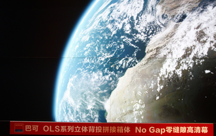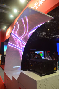 本次展會上,德浩借助巴可投影機打造出了多套成熟的高端投影顯示解決方案,其中包括單臺200英寸大屏幕投影系統、曲折表面投影顯示系統、三臺半球幕拼接融合系統、雙臺投影機拼接融合系統、地面投影系統、三臺垂直超窄曲面拼接融合系統等等。巴可公司是一家為專業市場設計并開發可視化解決方案的全球領先技術公司,活躍于全球,在歐洲、北美和亞太地區都擁有自己的市場銷售、客戶服務機構和生產研發基地,在國內巴可依托德浩科技強悍的系統整合能力在專業顯示領域一直保持行業領先地位。巴可產品高端、成熟、震撼的解決方案吸引了眾多的觀眾駐足觀看,尤其是地面投影與半球幕投影系統與MINI歐歌賽舞臺,其逼真的現場體驗效果得到參觀人員的一直認可。 |
