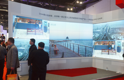 會間,德浩還展示出其在專業平板顯示系統領域的強大實力,展出了LG47寸與LG55寸超窄邊框拼接顯示系統,產品邊框只有4.9mm和3.5mm,窄邊設計與輕薄的機身可輕松拼接出超震撼的視頻墻面,易于安裝、維護和管理,IPS硬屏設計與高表現力的色彩還原功能可呈現出超大高清顯示畫面,絢麗的色彩給以強悍的視覺沖擊感。同時展出的42寸等離子無縫拼接墻系統同樣震撼參展者,前置裝卸、單元操作、安全便捷等卓越性能打造完美拼接顯示,1mm微小拼縫同時擁有1700cd/㎡超高亮度,是全球唯一真正意義上的無縫等離子拼接產品。