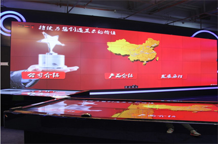 等離子拼接大屏在運用于高端商業顯示屏時,可與小型拼接桌相連,配合ICT smartPerform多媒體互動演示系統,演示者可在觸摸互動桌面上進行操控演示,觀眾通過大屏觀看演示內容。這種組合方式用于控制室、企業展廳、會議室等場所,指揮調度、發布品牌信息、經營理念、企業文化、生產流程等。