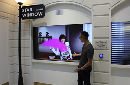互動(dòng)櫥窗區(qū):只要輕輕按下門(mén)鈴,明星便會(huì)慢慢向你走來(lái),神奇的出現(xiàn)在你面前,與你揮手致意。