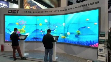 平板展區,DET帶來了針對高端控制室的LG55英寸無邊框拼接顯示器(LG55VH7B),針對商場互動演示的DET