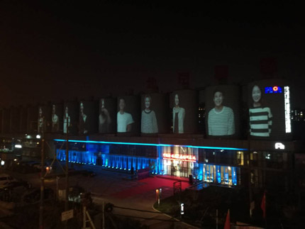10臺DET-SWU1激光工程投影機完成了中國新媒體藝術創研基地的外景投影燈光秀。新媒體藝術創研基地建筑外墻上布置了10個巨型圓桶,分別由10臺DET-SWU1激光工程投影機在圓桶上進行投影。美輪美奐的科技光影與建筑圓形相結合,打造出一場極具創意與個性的激光投影秀。