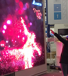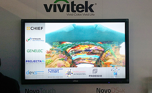 臺達在會中則展出了全新的4K DLP®激光顯示墻,擁有無與倫比的4K分辨率畫質及2,400流明亮度,業界最薄560mm的箱體厚度更是一大亮點。此外,臺達旗下品牌Vivitek(麗訊)展出其第一款超短焦激光投影機,Novo(暢享匯)帶來NovoConnect系列產品的多人互動協作系統NovoEnterprise和NovoTouch,以及電子看板解決方案NovoDS4K。