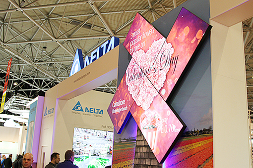除了背投顯示墻,臺達也于展中推出1.9mm小間距LED無縫拼接顯示屏,兼具能耗低、使用壽命長及出色的散熱性能等特點,是控制室、零售、高檔商業空間及大型會議室等室內高端顯示的絕佳選擇,模塊化及相對輕巧堅固的設計,通過互動多媒體的內容設計,吸引眾多視訊系統廠商及觀眾駐足體驗。 |