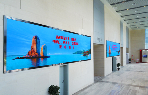 因應數字化展廳的大趨勢,近日,福建省平潭綜合實驗區于多方研究和了解后攜手臺達視訊,在綜合實驗區商務營運中心金融產業大廈的一樓展廳選用了P1.6規格的臺達小間距LED產品與DVCS分布式圖像顯示控制系統,打造了整屏達4560*1120全高清畫質,單屏規格寬7.6m高2.1m,總面積共31.2平米的兩塊小間距LED大屏,分布在大廳左右兩側,氣勢恢宏,成為平潭綜合實驗區宣傳和展示窗口的又一幅精彩畫卷。