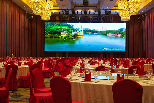 廣州長隆酒店國際會展中心是中國南方地區(qū)大型的國際會展中心之一,地理條件優(yōu)越,其中國際會議中心大廳面積達6,000平方米,可同時容納3,000人進行會議,擁有12米無柱高樓頂,直徑8米的圓形升降舞臺,可將長隆國際大馬戲的精彩表演帶入商宴、婚宴中,力求打造一流的商務(wù)會議品牌。而伴隨著這塊LED巨幕的落成啟用,長隆酒店國際會展中心也將提供超一流的會議、展覽和宴會服務(wù)體驗。