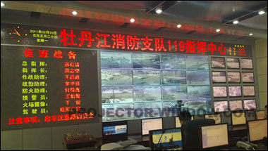 牡丹江消防119指揮中心采用4×4共16塊60寸DLP顯示大屏幕單元拼接而成 |