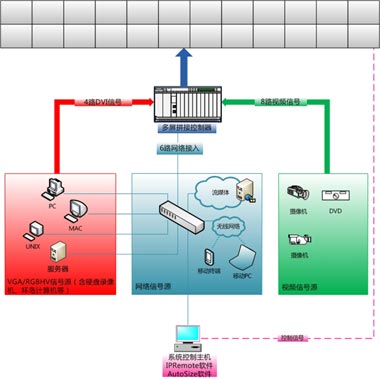 多屏拼接控制器:在大屏幕投影系統中,多屏拼接控制系統作為系統信號處理的核心,在很大程度上決定了整個系統的顯示效果,顯示質量,操作的靈活性以及可靠性。因此,在此方案中,GQY公司結合DDX-D系列投影機內置圖像處理器的特點,根據技術規范和要求,選擇了Jupiter