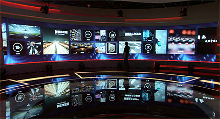 據了解,中國北京電視臺(BTV)新媒體工作基地的全媒體演播室也安裝了Prysm(溥美)顯示墻。360°全媒體演播大廳,以Prysm(溥美)顯示墻為中心,面積為12.8米寬,2.3米高,是全球最先進的廣電演播間顯示墻