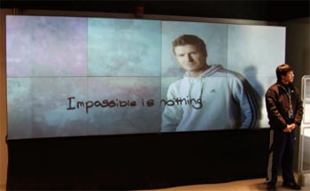 北京2008年奧運會、北京2008年殘疾人奧運會合作伙伴世界著名運動用品制造商阿迪達斯公司北京王府井旗航店位于北京市繁華的王府井商區(qū)。阿迪達斯公司為開拓周邊市場、配合公司的營銷策略,在王府井旗航店內(nèi)安裝清華紫光大屏幕循環(huán)滾動播放公司宣傳片、明星代言廣告、最新活動公告等信息。
