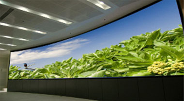 • 超大幅面:屏幕副高2.2米,長度50米,適合多通道融合