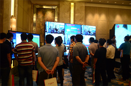 來賓手持IPAD體驗VIS云視通平臺的應用。VIS與威創DLP和LCD顯示屏珠聯璧合,可實現超高分大屏海量信息跨區域、跨平臺、跨終端實時傳輸及顯示。 |