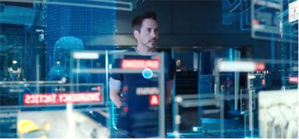 [投影之窗消息] 《鋼鐵俠》呈現(xiàn)的未來視像操控,在主角托尼•斯塔克的操控下達(dá)到全新的境界,他置身于3維圖像之間,觀看被標(biāo)注有數(shù)據(jù)的圖形,抽取其中他感興趣的內(nèi)容,近距離進(jìn)行仔細(xì)查看,這種將觸摸屏和全息影像技術(shù)的精彩結(jié)合,比斯皮爾伯格的《少數(shù)派報(bào)告》的“隔空探物”更勝一籌,也不只是像《阿凡達(dá)》中的驚鴻一瞥。