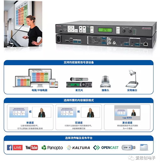 課堂上,SMP 352 流媒體處理器在捕獲教師及電子屏幕畫面的同時,還可為學校提供 RTSP