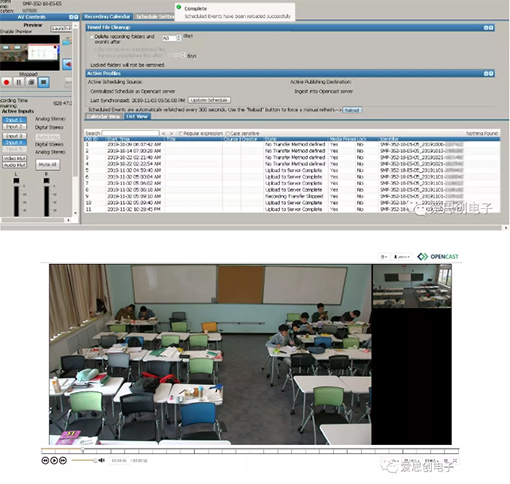 課堂錄制的內容經由 SMP 352 流媒體處理器被自動上傳到 Opencast