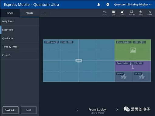 拼接墻系統(tǒng)。它結(jié)合了自由的無線控制和便捷的操作流程。該軟件可通過點(diǎn)擊、拖放、滑動及收縮/拉伸等常用的手勢來進(jìn)行操作。其豐富而強(qiáng)大的功能包括預(yù)設(shè)選擇、窗口大小設(shè)置、圖層和信號源選擇以及完成其它常見的操作任務(wù)。它最多可支持