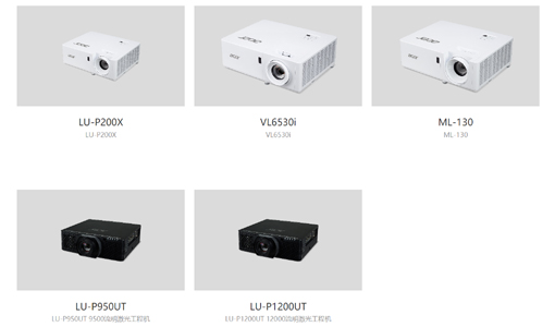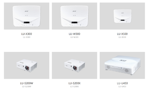 以宏碁熱賣機型LU-U450、LU-U500為首的短焦激光投影機同樣為用戶提供了多樣的選擇性。亮度由3700-5700流明不等,分辨率由XGA至WUXGA不等。