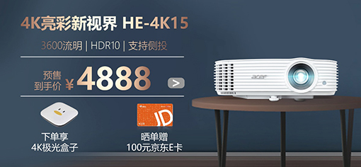 宏碁投影京東自營旗艦店 宏碁4K投影機HE-4K15 618寵粉預售到手價4888元> >購買鏈接