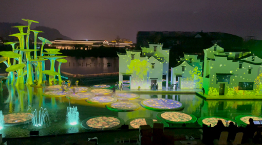 T系列擁有最高超過三萬流明的亮度輸出,滿足戶外項(xiàng)目對(duì)屏前照度的高要求。江西省上饒市婺源縣,以“中國(guó)徽藝文旅度假小鎮(zhèn)”聞名,投影實(shí)境秀是這里的核心景觀。6臺(tái)T系列打造恢弘“大湖秀”,巨幅影像覆蓋徽派建筑、神樹雕塑和水幕三大場(chǎng)景。此外,8臺(tái)T系列在59米高“抱玉塔”上實(shí)現(xiàn)Mapping投影秀,將歷史傳說娓娓道來。