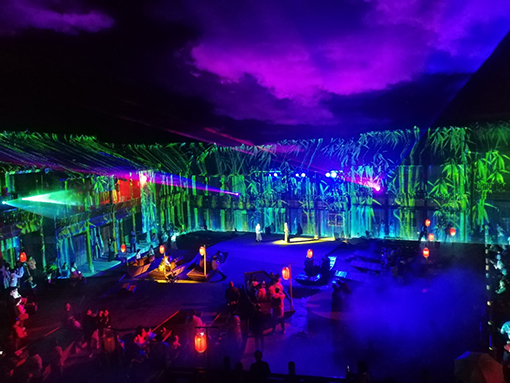 應(yīng)對(duì)復(fù)雜的安裝使用環(huán)境,輕量化的T系列更具競(jìng)爭(zhēng)力,體積小、重量輕、噪音低、360度安裝等優(yōu)勢(shì)非常適合文旅項(xiàng)目。《葭萌春秋》是四川省廣元市首部大型沉浸式實(shí)景院落劇,7臺(tái)T系列打造建筑Mapping彰顯劍門蜀道氣韻,讓游客融入舞臺(tái),穿越在昭化古城“巴蜀第一縣,蜀國(guó)第二都”的千年歷史之中。
