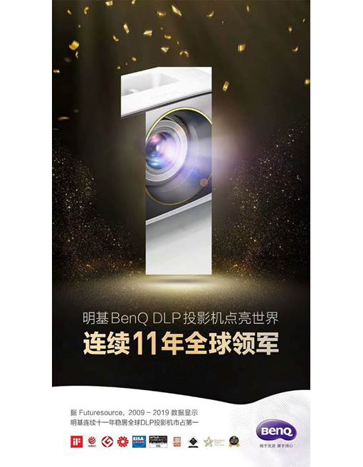 據Futuresource,2009~2019數據顯示,明基連續十一年穩居全球DLP投影機市占第一。一些旗下產品也受到國內外的肯定。其中,明基i965L
