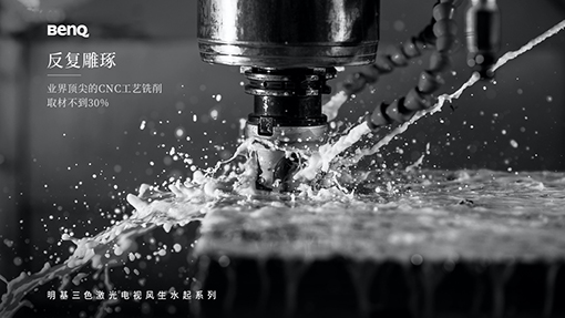 與足以媲美專業影院的頂級音畫相匹配,明基產品開發團隊在外形和內部構造設計上,也希望呈現出“音色和鳴”的觀感。團隊繼承發揚了BenQ一貫“東體西形兩元相融”的設計哲學,從自然汲取靈感,萃取“風”與“水”兩大自然意向元素,凝結為“風可見,水無形”的設計理念,最后通過西方的設計方式進行表達,使產品文化內涵與現代感并存。