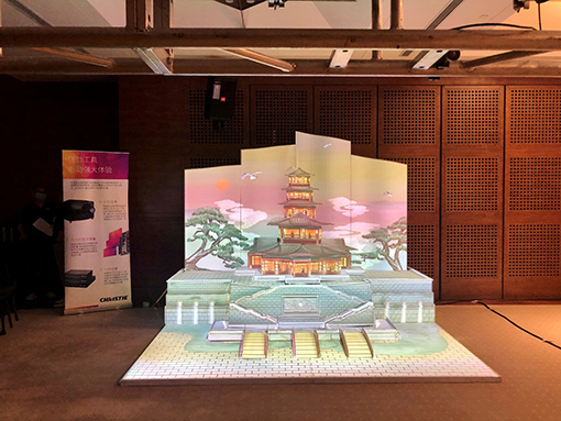 另一個亮點則是一場迷人的中國風實景演藝3D投影秀,它在一座長6米、高3米的仿古塔樓模型上進行。這場投影秀配置了三臺20,600流明的科視Christie