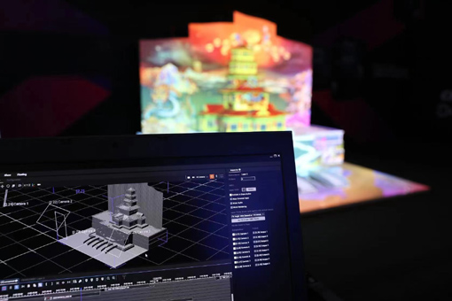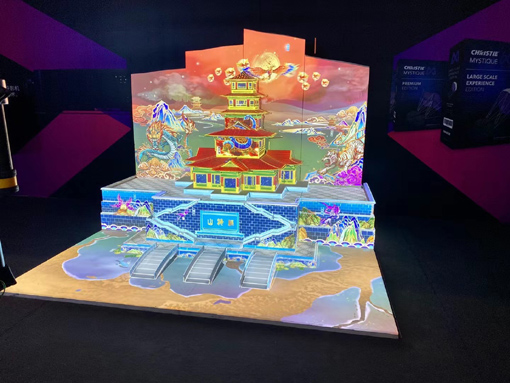 創意展區帶來的是一場迷人的中國風實景演藝3D投影秀,它在一座長 6 米、高 3
