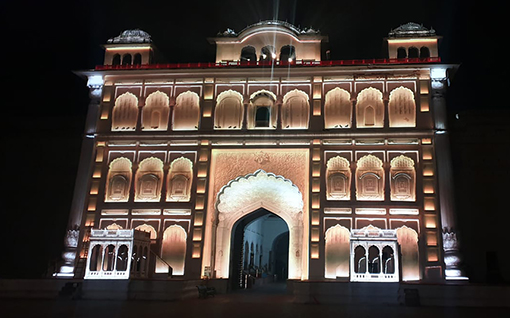 激光投影機點亮了一座位于印度西北部的錫克教建筑風格古堡,再現其歷史上的榮耀與輝煌。