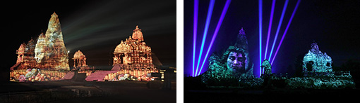 七臺科視Christie D23WU-HS激光投影機點亮克久拉霍寺廟的外立面(圖片來源:Tricolor