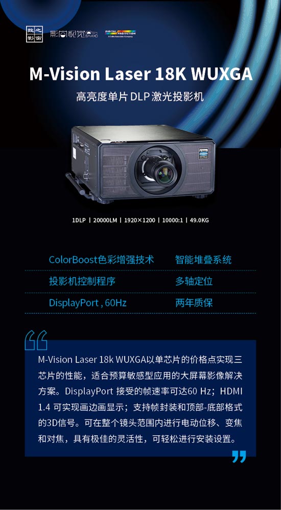 M-Vision 超高亮度單片 DLP 雙色激光投影機第一發:M-vision Laser 18K WUXGA。
