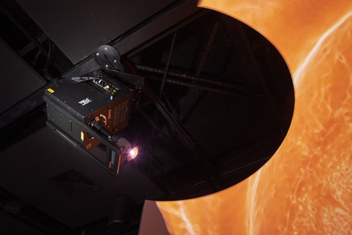 最終柱面顯示使用了三個“SATELLITE”投影頭,而搭載魚眼鏡頭的單個“SATELLITE”為圓頂顯示提供視覺效果。能夠為圓柱體和圓頂顯示系統使用相同型號的投影設備還具備后期維護的優勢,比如在出現故障時可以實現輕松更換組件。為適應4K