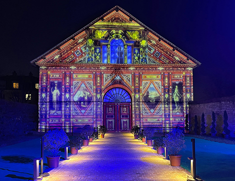 XIII之光”沉浸式表演還包括每晚在建筑外立面上進行的六分鐘投影Mapping顯示,這是通過在距離外立面30米的兩個側塔中安裝M-Vision