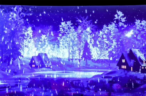 不僅如此,為了更好的展現(xiàn)出龍泉山四季場景,愛普生激光工程投影機(jī),可以通過自動(dòng)比例調(diào)節(jié)功能,進(jìn)行更簡便的多屏幕投影,并通過升級的邊緣融合功能,進(jìn)行更精確的邊緣融合調(diào)整,讓畫面細(xì)膩過度,逼真展現(xiàn)了龍泉山四季的交迭:春季色彩鮮明,桃花盛開,蝴蝶飛舞;冬季雪落紛紛,溪流成冰,松枝傲立……獨(dú)特的光學(xué)技術(shù)與強(qiáng)悍的色彩張力繪制出了真實(shí)的森林景觀,實(shí)現(xiàn)了數(shù)字世界與現(xiàn)實(shí)世界的無縫結(jié)合,詩情詩意呼之欲出。