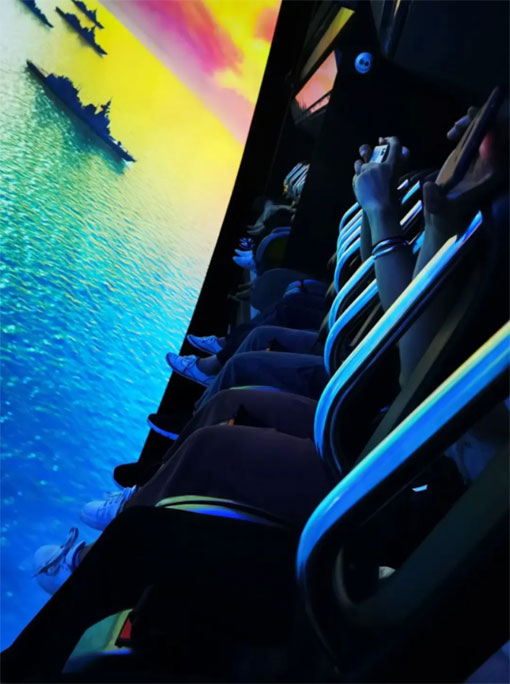 為了保證高清晰的畫面感,整個球幕使用了5臺15,000流明*1*2愛普生激光工程投影機CB-L1755UNL搭載ELPLU04鏡頭,采用的3LCD技術(shù)可以實現(xiàn)更高的光利用效率,色彩絢麗,過渡柔和。同時,CB-L1755UNL內(nèi)置自動色彩校準系統(tǒng),當(dāng)多臺投影機并用時同樣能夠?qū)崿F(xiàn)高精度色彩一致性,配合ELPLU04鏡頭,使飛行影院的沉浸式觀影效果卓越超群,帶給游客極強的臨場感和震撼力。