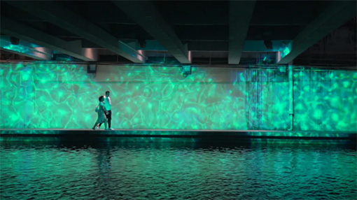 其中千燈湖兩側亭臺內部被全息紗幕覆蓋,采用了8臺15000流明愛普生激光工程投影機CB-L1715