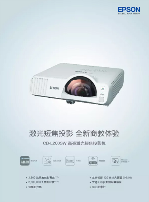 為滿足教育場景和會議辦公等需求,愛普生推出高亮激光短焦投影機CB-L200SW,在實現體驗升級的同時,讓機器變得更加小巧緊湊、持久可靠,別看它體積小,優點可不少,下面讓我們來看看它的表現吧~