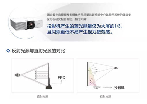 關于投影機對人眼視力的保護原理,參考“國家數字音視頻及多媒體產品質檢中心《液晶(LCD)投影與平板(FPD)顯示系統在教育領域中的健康安全與系統性能分析研究報告》”。