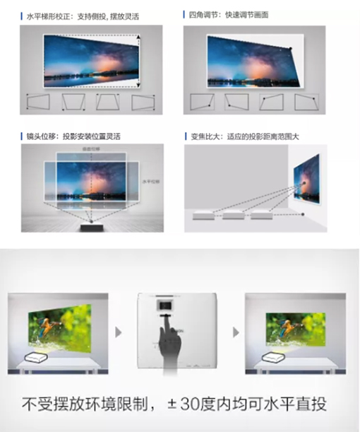 作為辦公會議的常用設備,愛普生投影機具備水平梯形校正、靈活變焦、四角調節等功能,而且擺放靈活,同時還簡化了安裝調試的步驟,在狹小空間或安裝位置受限的環境中,也能靈活應對。