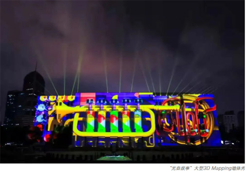 Mapping墻體秀、新國樂沉浸藝術特展三大板塊內容,通過建筑、藝術、音樂、光影、科技的交互,實現“國際風范”與“東方神韻”的深度交融。