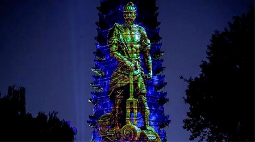 山西河津九龍公園中的九龍塔,是當地地標建筑。夜晚來臨,這場如夢如幻的九龍塔燈光投影秀開啟,伴隨著音樂,古塔生龍活虎起來。本次投影秀使用了32臺愛普生激光工程投影機,在高45米,寬14米的塔身上創造了立體感十足的影像。光與影交相輝映,聲與圖相得益彰,生動再現了河津歷史人文故事。