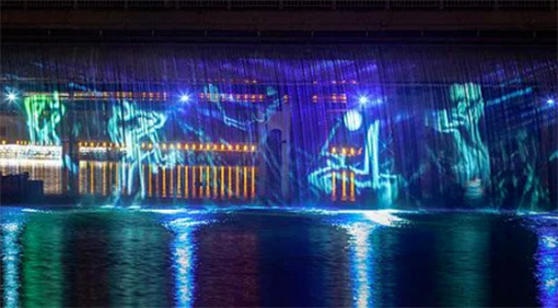 NL通過融合的形式,以強大的表現力,打造出87米×6.5米的水簾投影勝景。