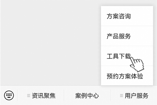 點進聊天框,依次點擊下方菜單按鈕:用戶服務——>工具下載