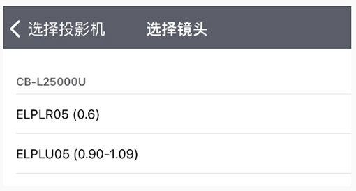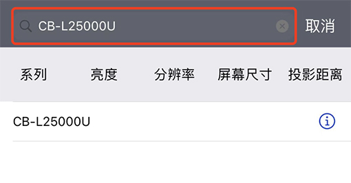 打開愛普生投影距離計算器APP,在上方搜索欄輸入你的投影機型號,點擊,并選擇鏡頭