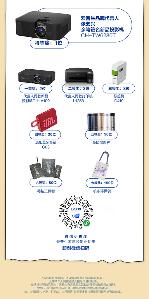 [投影之窗報道]  愛普生家用投影機新品上市,雙重活動同期上映,親簽投影機等多重代言人專屬好禮在愛普生。