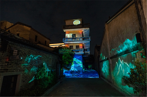 [投影之窗消息] 《“一步一景一畫卷,移步換景畫中游”,觀瀾古墟,似被光影詩人所雕刻,在觀瀾古墟中夜游,現(xiàn)代感十足的光影秀從墻面驟然躍出,訴說著古墟的滄桑變化。